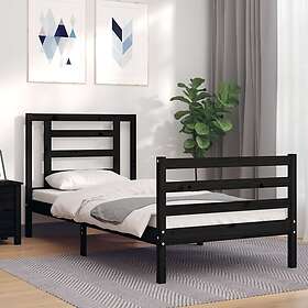vidaXL Sängynrunko med huvudgavel svart 90x200 cm massivt trä 3194690