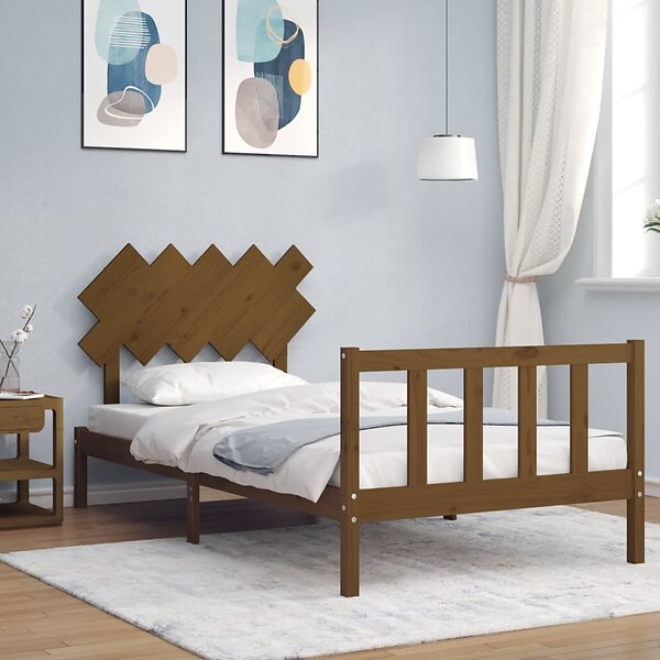 vidaXL Sängynrunko med huvudgavel honungsbrun 100x200 cm massivt trä 3193459
