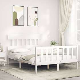 vidaXL Sängynrunko med huvudgavel vit dubbelsäng massivt trä 3193307