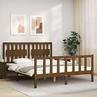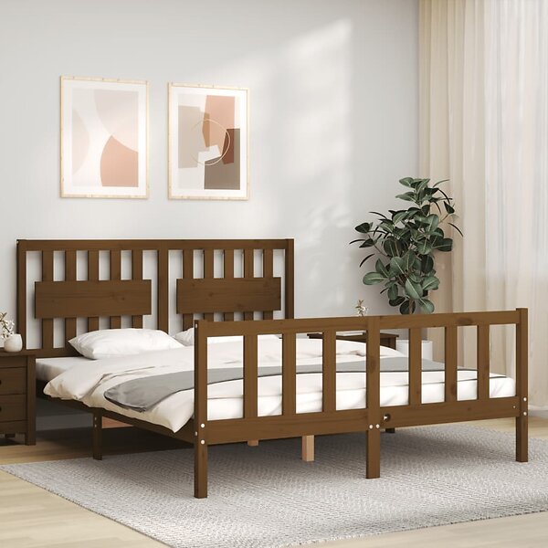 vidaXL Sängynrunko med huvudgavel honungsbrun 160x200 cm massivt trä 3192439