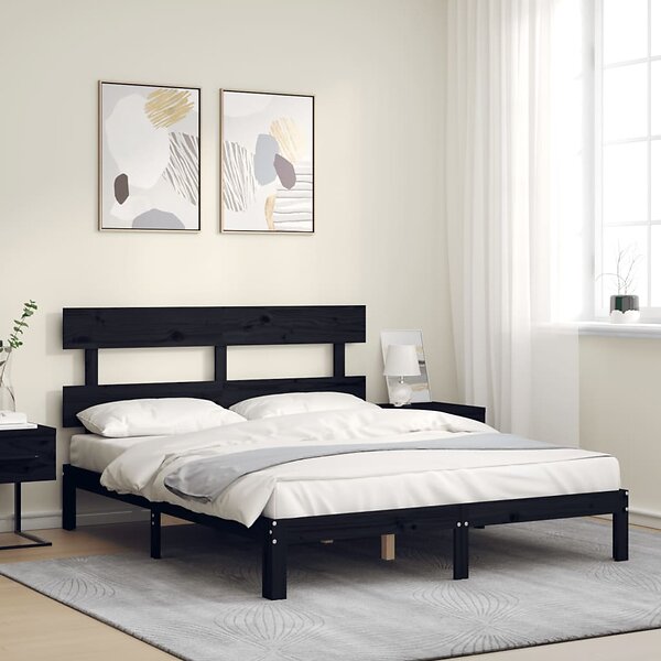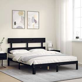 vidaXL Sängynrunko med huvudgavel svart 160x200 cm massiv furu 3193545