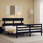 vidaXL Sängynrunko med huvudgavel svart 5FT King Size massivt trä 3195100