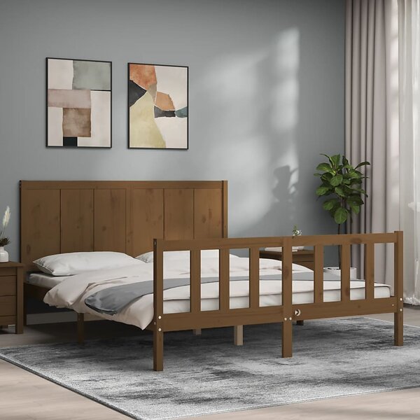 vidaXL Sängynrunko med huvudgavel honungsbrun King Size massivt trä 3192629