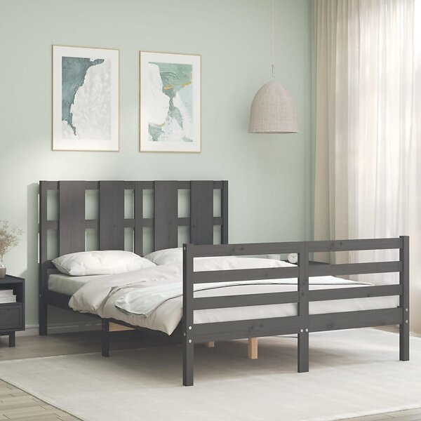 vidaXL Sängynrunko med huvudgavel grå 140x190 cm massivt trä 3194098
