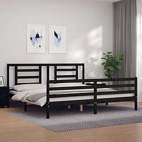 vidaXL Sängynrunko med huvudgavel svart 200x200 cm massivt trä 3194725