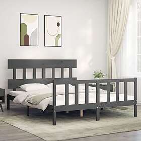vidaXL Sängynrunko med huvudgavel grå 5FT King Size massivt trä 3193343