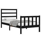 vidaXL Sängynrunko med huvudgavel svart 90x200 cm massivt trä 3191895