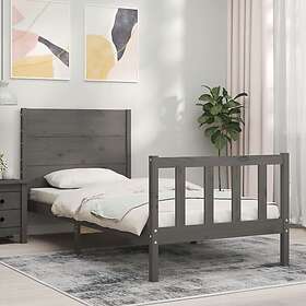 vidaXL Sängynrunko med huvudgavel grå 100x200 cm massivt trä 3192743