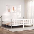 vidaXL Sängynrunko med huvudgavel vit 200x200 cm massivt trä 3192967