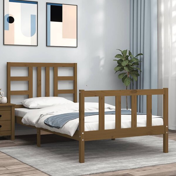 vidaXL Sängynrunko med huvudgavel honungsbrun 90x200 cm massiv trä 3191959