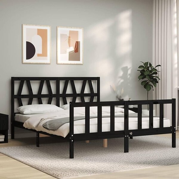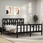 vidaXL Sängynrunko med huvudgavel svart 160x200 cm massiv furu 3192505