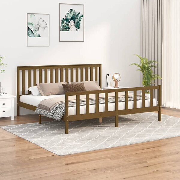 vidaXL Sängynrunko med huvudgavel honungsbrun 200x200 cm massiv furu 3188229