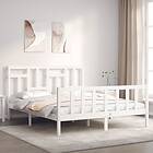 vidaXL Sängynrunko med huvudgavel vit 160x200 cm massivt trä 3193152