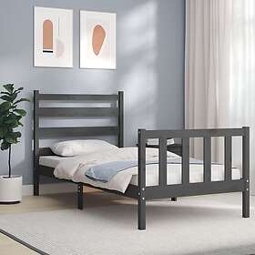 vidaXL Sängynrunko med huvudgavel grå 90x200 cm massivt trä 3192023