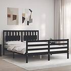 vidaXL Sängynrunko med huvudgavel svart 5FT King Size massivt trä 3194320