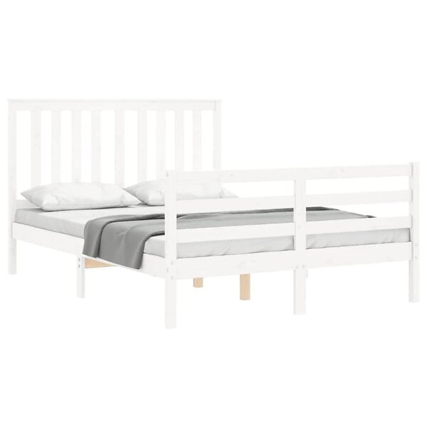 vidaXL Sängynrunko med huvudgavel vit 140x190 cm massivt trä 3194227