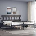 vidaXL Sängynrunko med huvudgavel grå 200x200 cm massivt trä 3195438