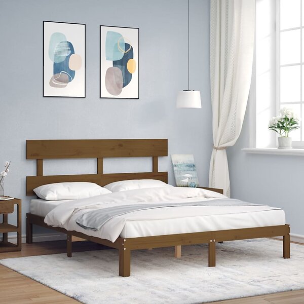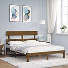 vidaXL Sängynrunko med huvudgavel honungsbrun King Size massivt trä 3193539