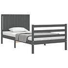 vidaXL Sängynrunko med huvudgavel grå 100x200 cm massivt trä 3194758