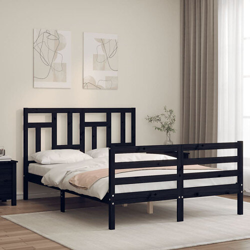 vidaXL Sängynrunko med huvudgavel svart 140x200 cm massivt trä 3194965