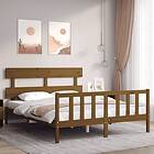 vidaXL Sängynrunko med huvudgavel honungsbrun King Size massivt trä 3193279