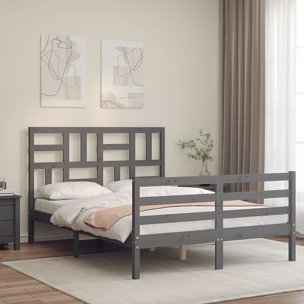 vidaXL Sängynrunko med huvudgavel grå 120x200 cm massivt trä 3194893