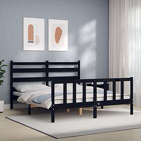 vidaXL Sängynrunko med huvudgavel svart 160x200 cm massiv furu 3192050