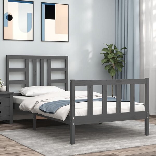 vidaXL Sängynrunko med huvudgavel grå 100x200 cm massivt trä 3191963