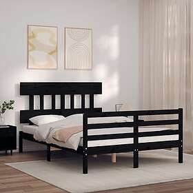vidaXL Sängynrunko med huvudgavel svart 120x200 cm massivt trä 3195155
