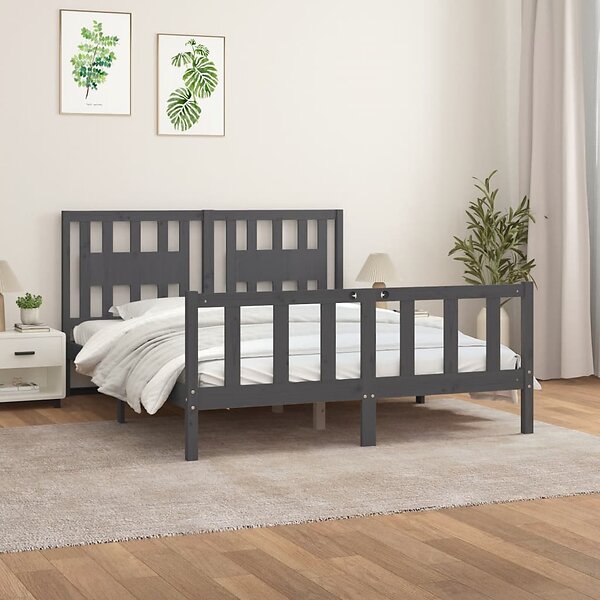 vidaXL Sängynrunko med huvudgavel grå massiv furu 160x200 cm 3188178
