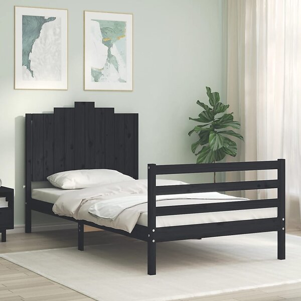 vidaXL Sängynrunko med huvudgavel svart 100x200 cm massivt trä 3194175
