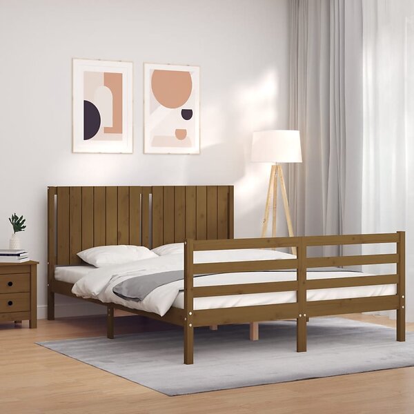 vidaXL Sängynrunko med huvudgavel honungsbrun King Size massivt trä 3194774