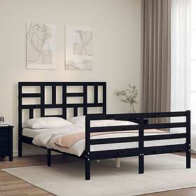 vidaXL Sängynrunko med huvudgavel svart 140x190 cm massivt trä 3194880