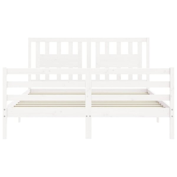 vidaXL Sängynrunko med huvudgavel vit 160x200 cm massivt trä 3194582