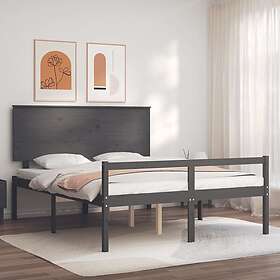vidaXL Sängynrunko med huvudgavel grå 160x200 cm massivt trä 3195493