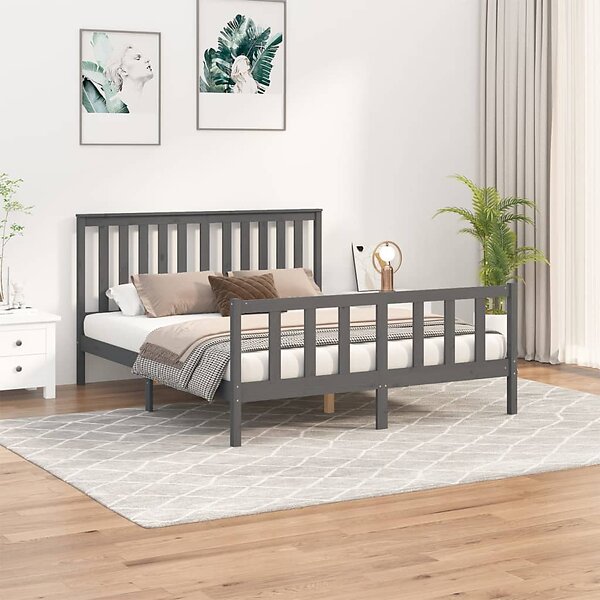 vidaXL Sängynrunko med huvudgavel grå 150x200 cm massiv furu 3188213