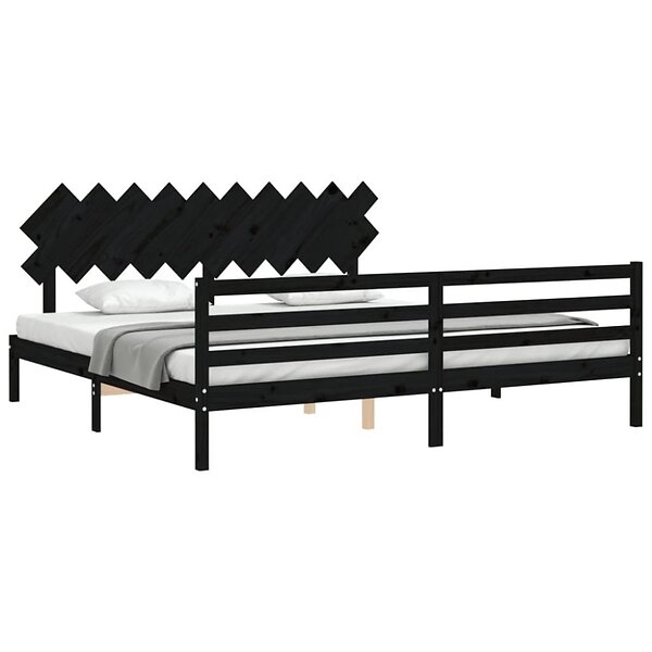 vidaXL Sängynrunko med huvudgavel svart 200x200 cm massivt trä 3195310