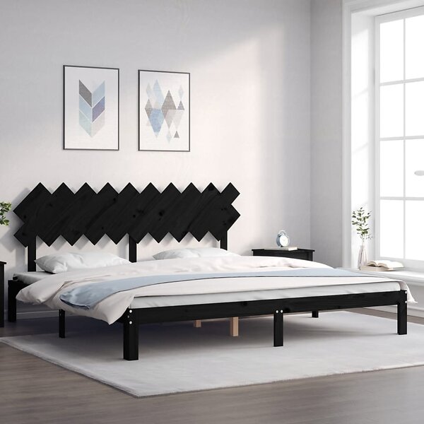 vidaXL Sängynrunko med huvudgavel svart 200x200 cm massivt trä 3193750
