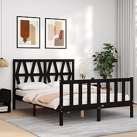vidaXL Sängynrunko med huvudgavel svart 140x190 cm massivt trä 3192475