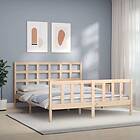 vidaXL Sängynrunko med huvudgavel 5FT King Size massivt trä 3192106