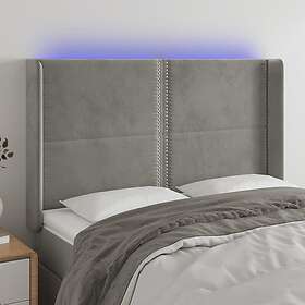 vidaXL Sängynpääty LED ljusgrå 147x16x118/128 cm sammet 3124096