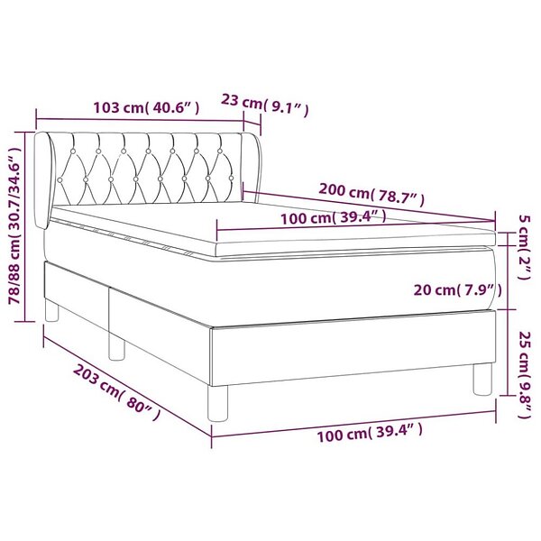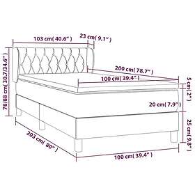 vidaXL Runkosänky med madrass mörkgrå 100x200 cm tyg 3126462
