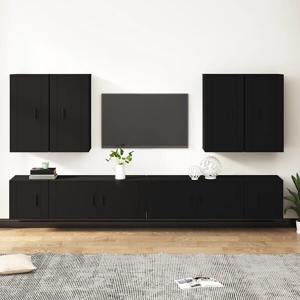 vidaXL Tv-skåp 8 delar Svart konstruerat trä 3188703