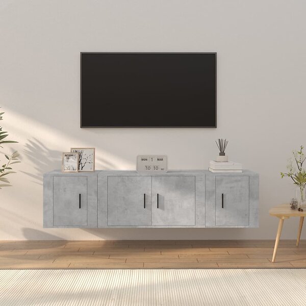 vidaXL Tv-skåp 3 delar betonggrå konstruerat trä 3188402