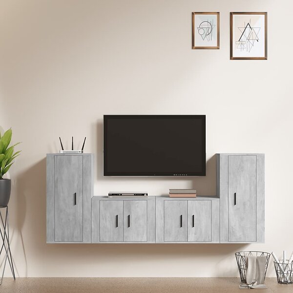 vidaXL Tv-skåp 4 delar betonggrå konstruerat trä 3188554