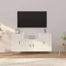 vidaXL Tv-skåp 3 delar högglans vit konstruerat trä 3188384