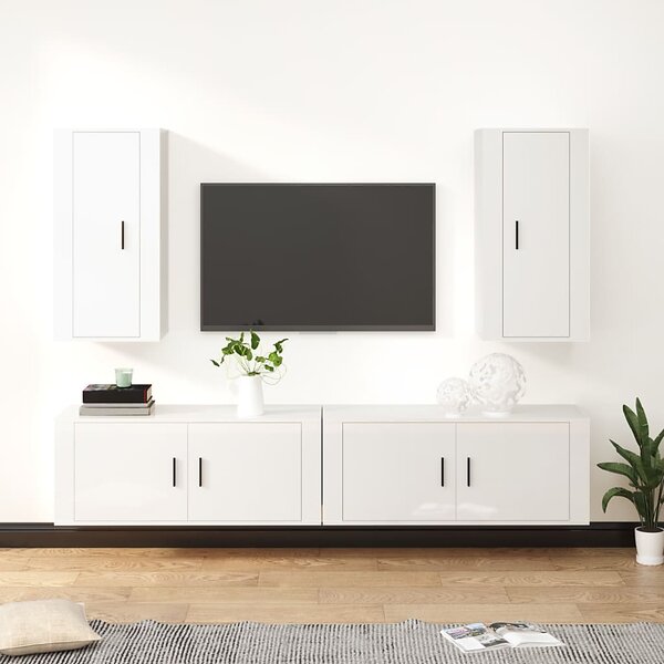 vidaXL Tv-skåp 4 delar högglans vit konstruerat trä 3188696