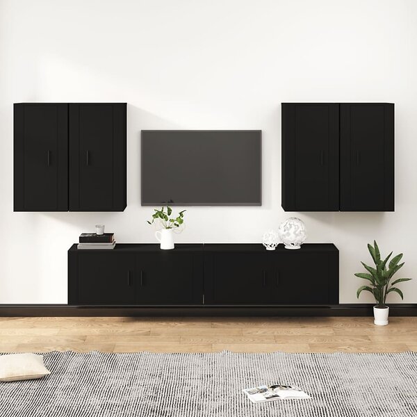 vidaXL TV-skåp 6 delar svart konstruerat trä 3188711