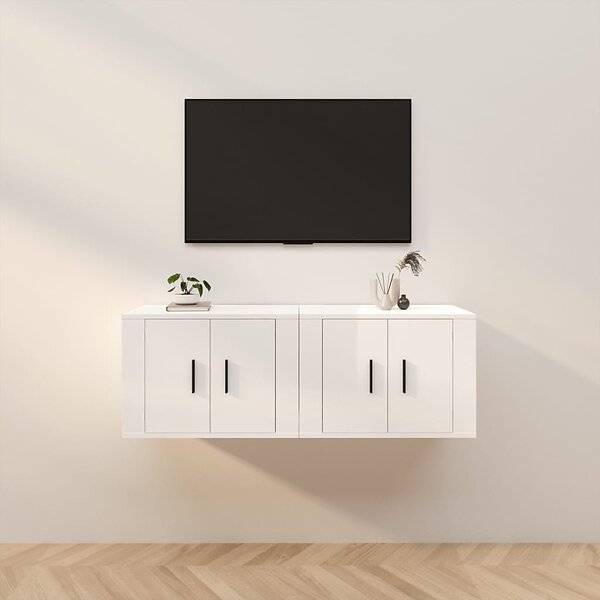 vidaXL Väggmonterade tv-skåp 2 st vit högglans 57x34.5x40 cm 3188336