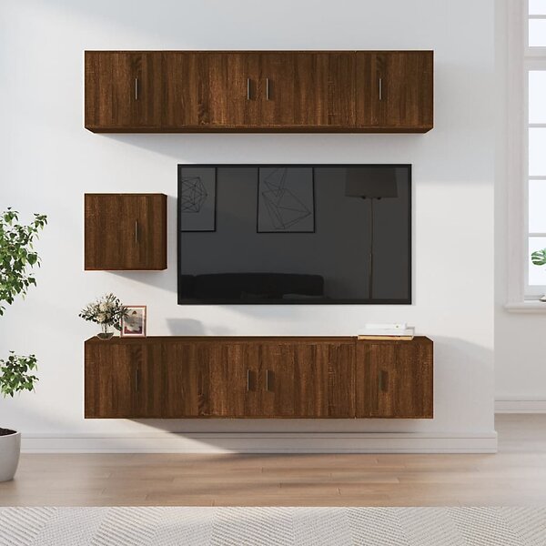 vidaXL Tv-skåp 7 delar brun ek konstruerat trä 3188669